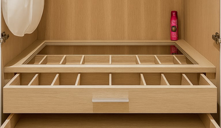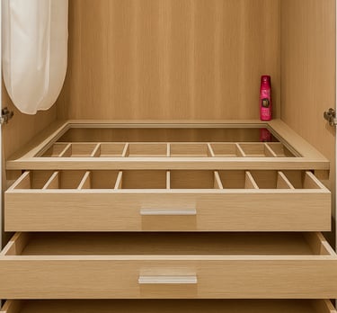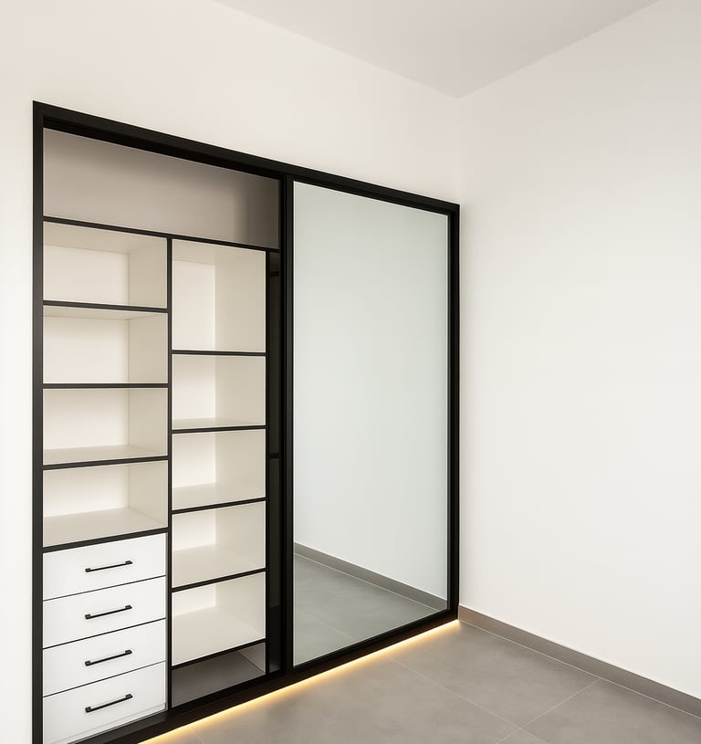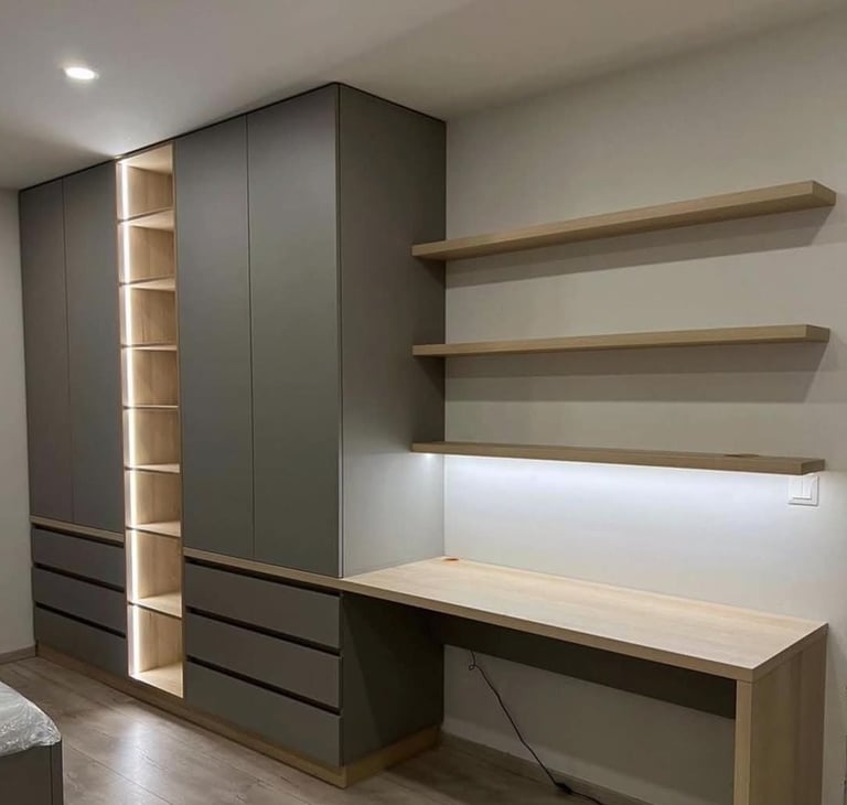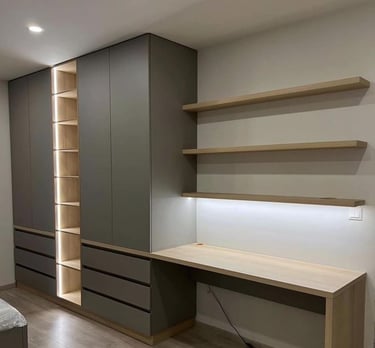 Whether you desire walk-in closets, built-in wardrobes, or sliding-door systems, we provide a comprehensive range of options designed to maximise your storage efficiency. With meticulous attention to detail, premium-quality materials, and precise craftsmanship, our wardrobes not only enhance your interior aesthetics but also deliver practical, organised functionality.